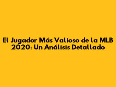 El Jugador Más Valioso De La MLB 2020: Un Análisis Detallado