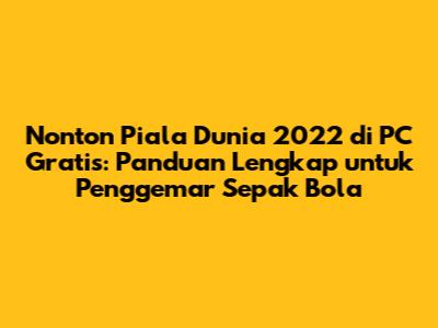 Hai, para penggemar sepak bola! Siapa di sini yang sudah nggak sabar menantikan Piala Dunia 2022? Pasti banyak dari kalian yang pengen banget nonton setiap pertandingannya, kan? Nah, kalau kalian lebih nyaman nonton di PC atau laptop, kalian datang ke tempat yang tepat, guys! Artikel ini akan membahas cara nonton Piala Dunia 2022 di PC secara gratis. Kita akan membahas berbagai opsi, mulai dari situs streaming resmi yang menyediakan siaran gratis, hingga tips dan trik agar pengalaman menonton kalian lebih seru dan lancar.