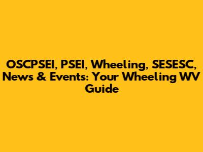 OSCPSEI & PSEI In Wheeling: News, Events & More!